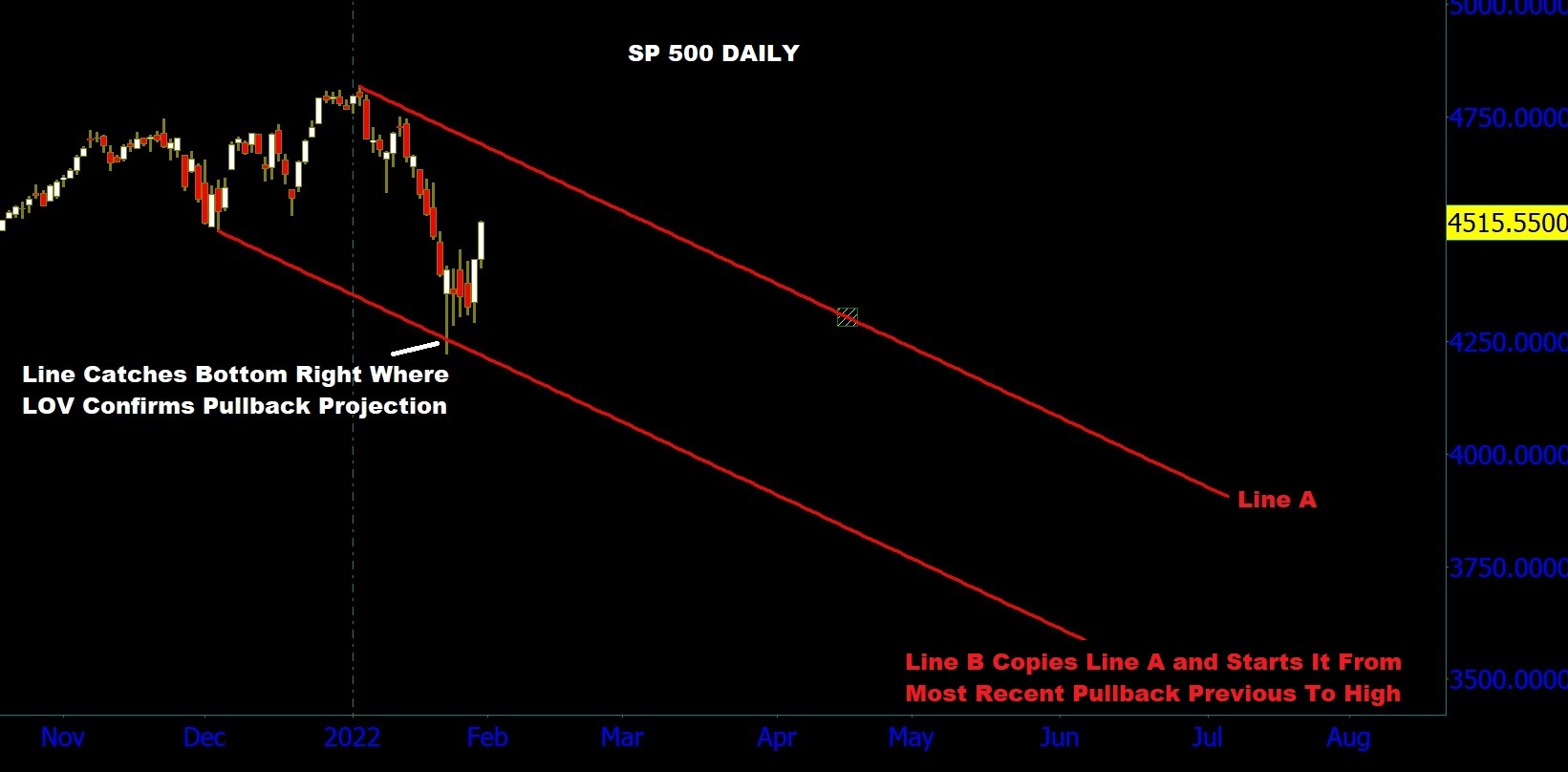 Scroll through the gallery below of Luther Jensen's market geometry applied to the SP 500 as it begins 2022. The slideshow is setup to first draw each line through a future astral point as soon as the market makes a high or low. Then that line is copied and applied to a previous pullback or pivot before market data fills in the chart. Then market data continues and usually hits the copied line and bounces off. Where price touches a line is shown to coincide with Law of Vibration price projection.